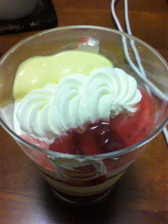 ジャム、クリーム、カスタード、ゼリー、スポンジ全部入りでなんかパフェみたい