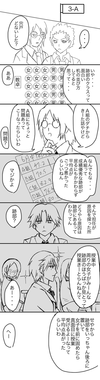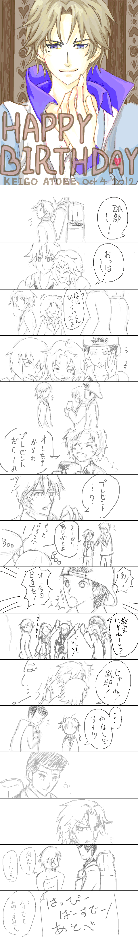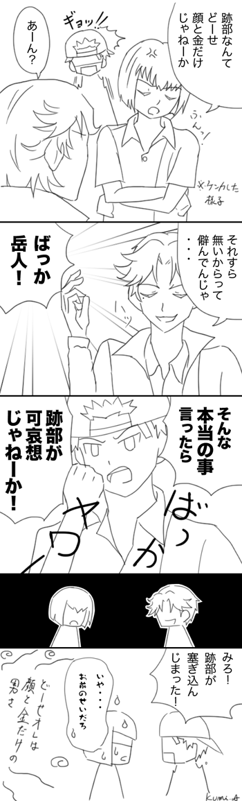 運動会のリレーでゴールテープの向こうに満面の笑顔で立ち両手を広げて日吉のゴールを待ってるとか跡部様ならやりかねない、そう思って描いた